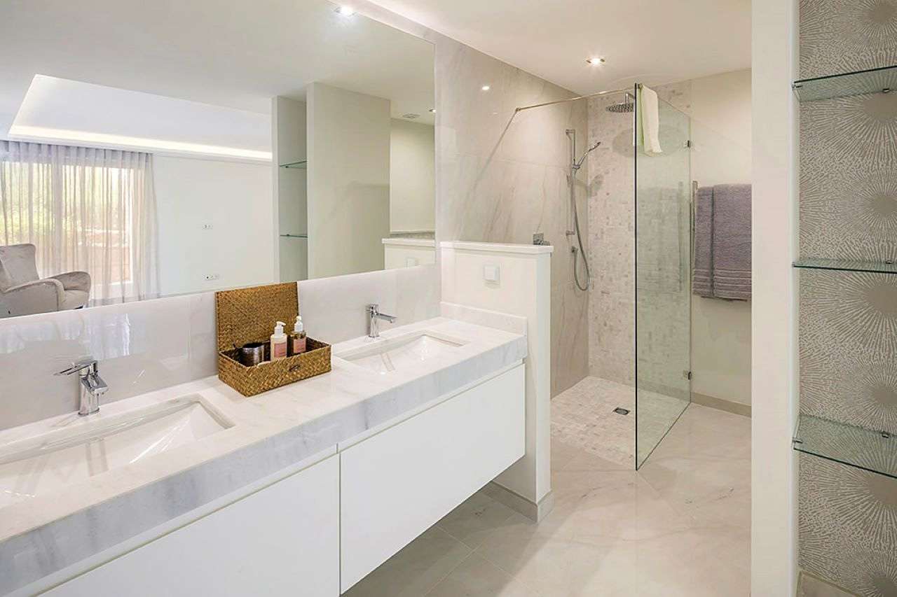 Project Role: Design and specification of bathrooms, kitchen and wellness area for this majestic home nestled at the end of a private cul de sac. My clients were wonderful in ...